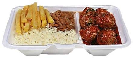 Almôndegas Arroz feijão e fritas ou espagueti alho e óleo.